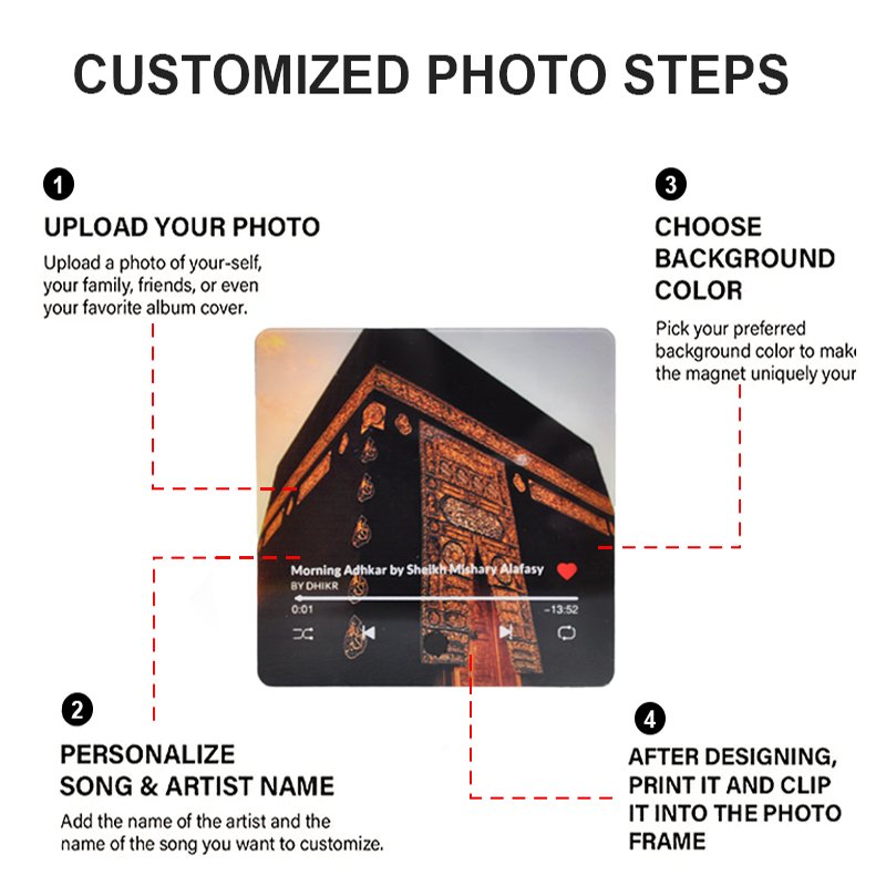 Furthermore, the front design can be customized with your own photo or artwork. At the same time, the audio content inside the magnet can also be customized according to your needs.