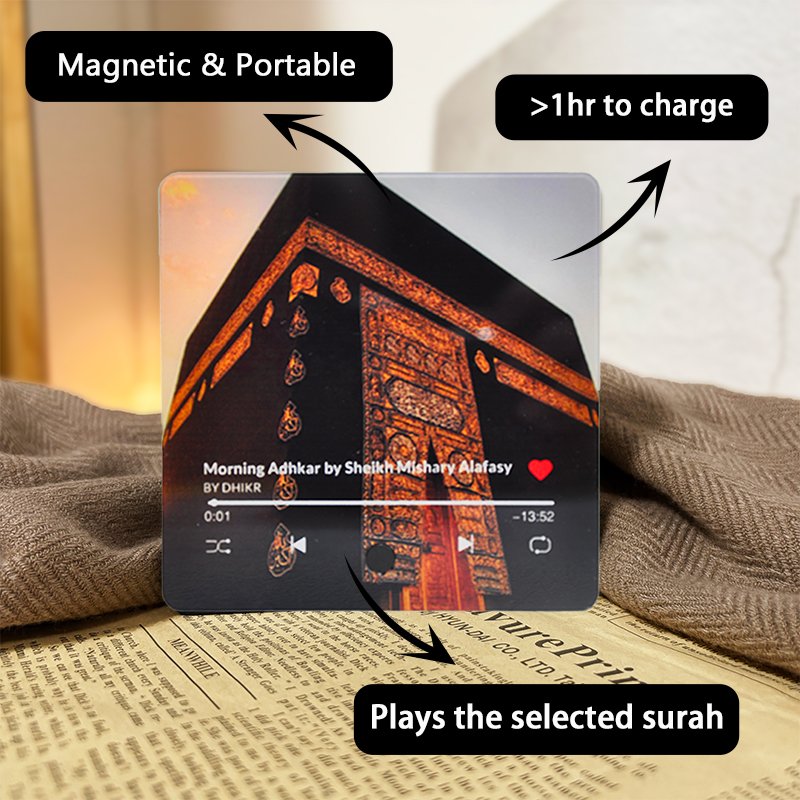 This Quran fridge magnet speaker is a unique Islamic product that combines decoration and spiritual listening. It allows users to enjoy selected Quran recitations in a simple and convenient way.