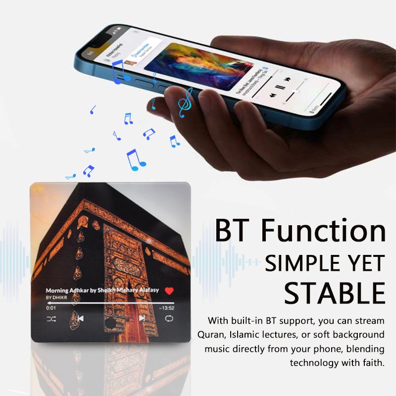 The device comes with preloaded Quran recitations. Moreover, it also supports Bluetooth connection, so users can play audio directly from their smartphone.